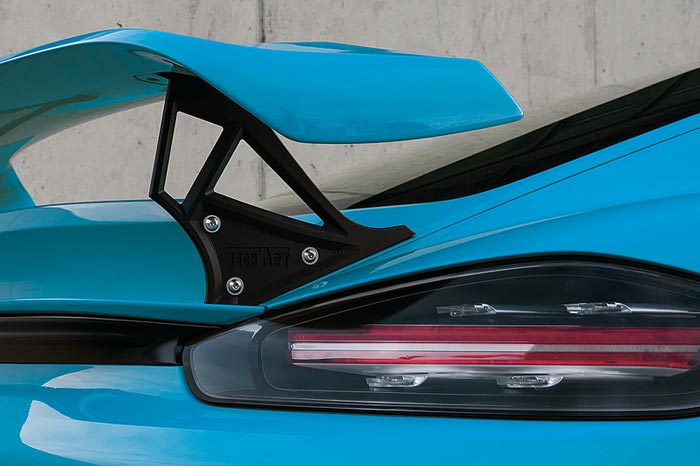 Techart ne se contente pas de faire du tuning, bien au contraire. Les préparations sont nettement plus poussées. Ainsi, le châssis des 718 Boxster et Cayman Techart bénéficie d’un abaissement de 30 millimètres, qui améliore la tenue de route et rend la conduite plus sportive, grâce à des ressorts sport spécialement développés par le préparateur.